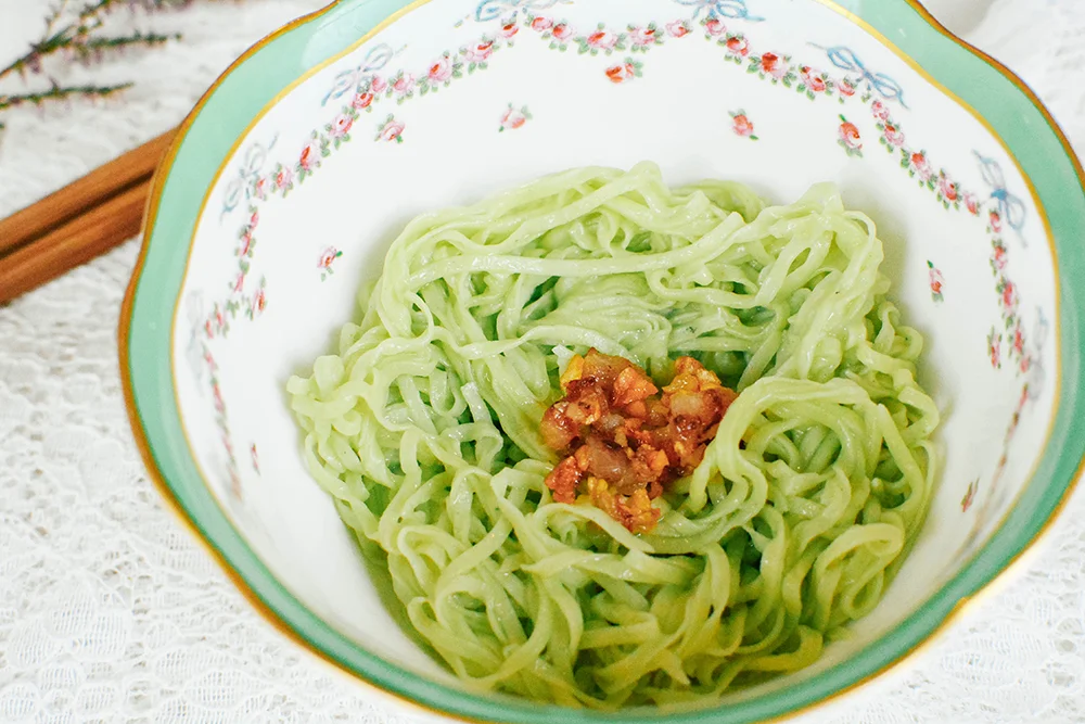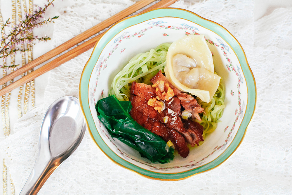I made my own wonton wraps and egg noodle from scratch. To add a colour to the day, I did Jade noodle (Ba Mee Yok) - Green egg noodles flavoured with spring greens.