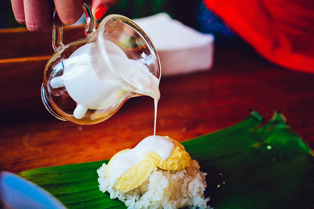 I contributed to the evening by making another dessert, Thai sticky rice with coconut milk and egg custard.